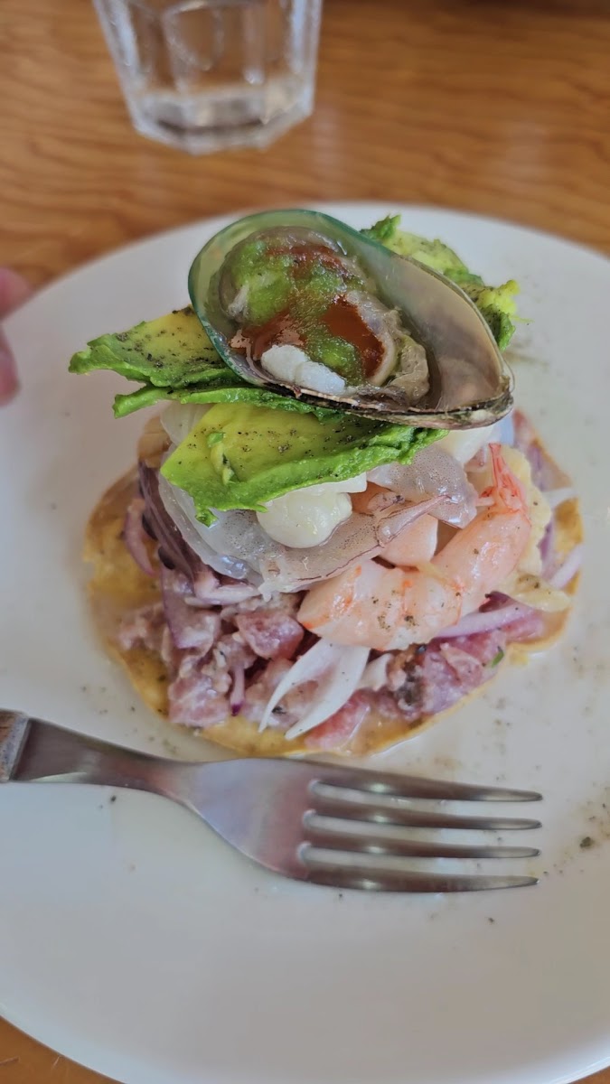 The seafood is amazing. We had a variety of seafood tostadas and the mixed seafood burrito. This is the best I’ve had in Puerto Vallarta! Come for lunch as they close at 7 pm.