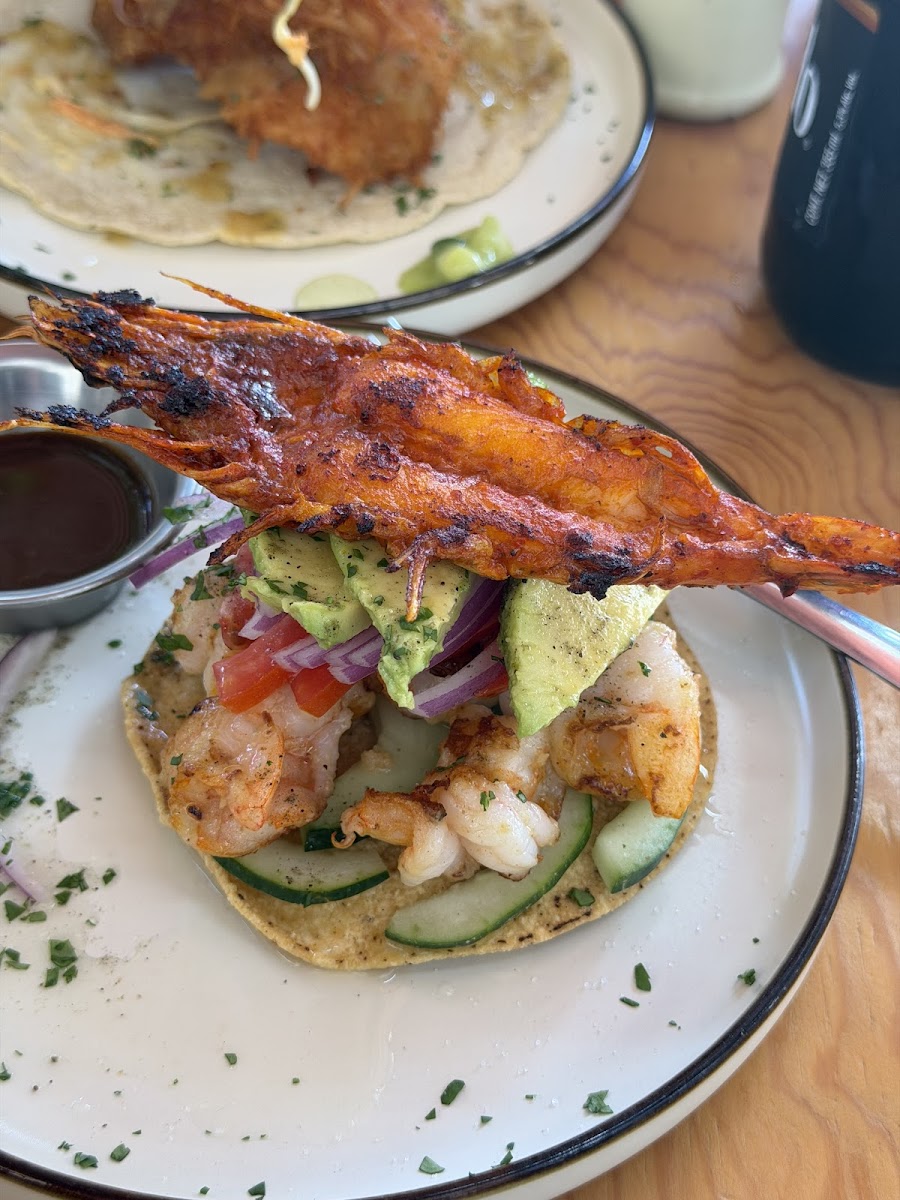 Great place for some seafood! I ordered the Redhead smoked marlin tostada and shrimp taco. A nice touch was the condiment sauces, straight from the fridge. Amazing service, excellent food, and very clean environment. Would recommend and we will be back!