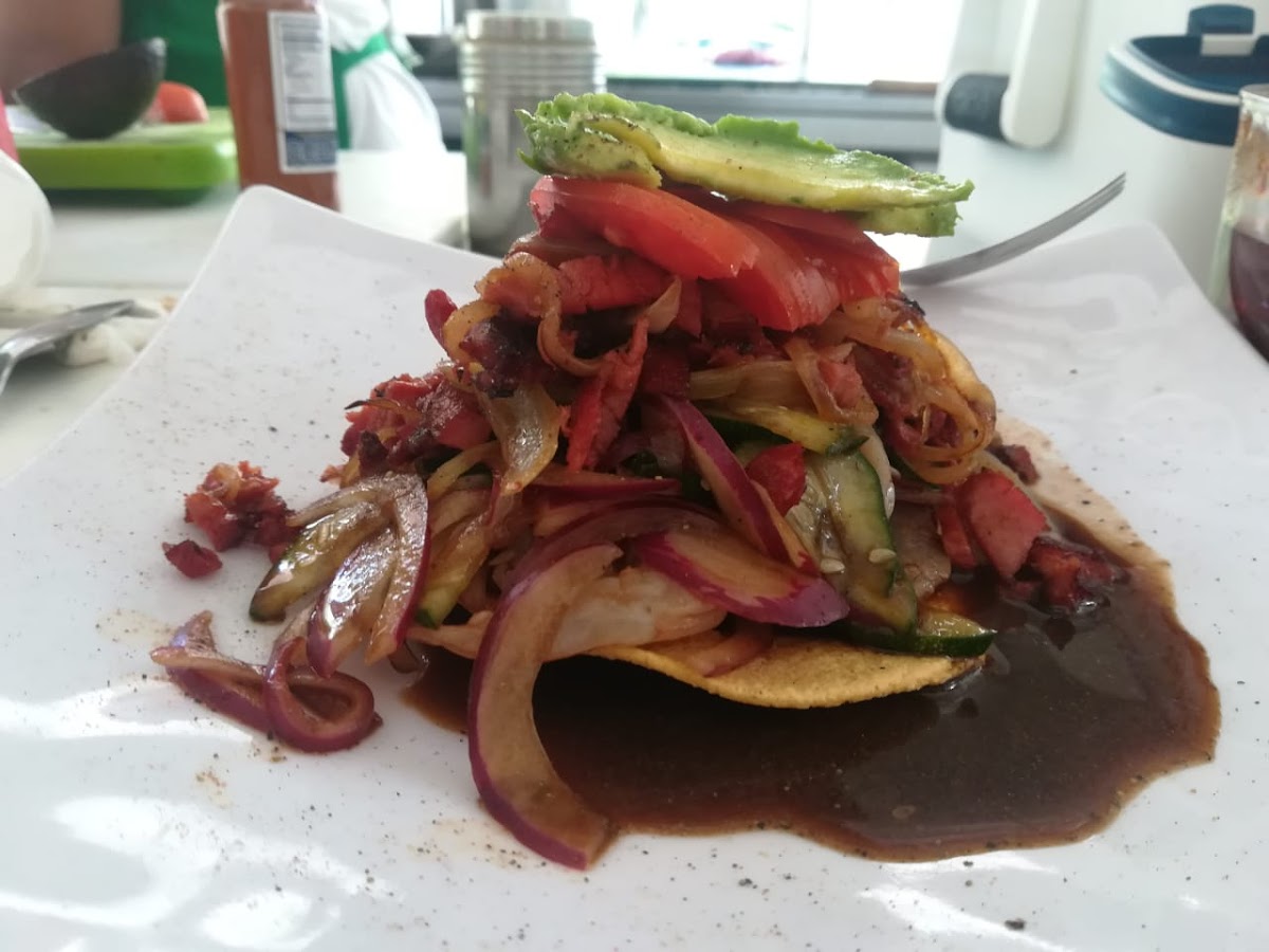 What a hidden gem! Try the pegamamazo de marlin- AMAZING. The other photo is the octopus and shrimp memela- YUM. Great people, great smiles and incredible food- a must!!